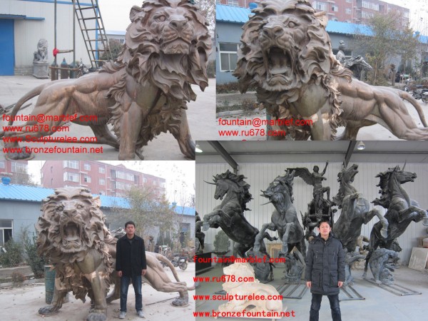 bronze lions sculptures ; bronze horses sculptures;