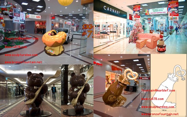 sculpture, iron sculpture, art clock, park bench, streetlight and so on.