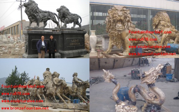 bronze lions sculptures ; bronze horses sculptures; brass