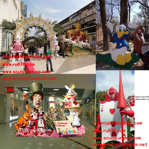 sculpture, iron sculpture, art clock, park bench, streetlight and so on.